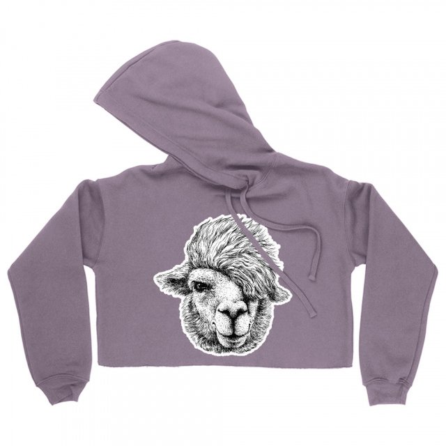 Llama Women’s Cropped Fleece Hoodie – Animal Cropped Hoodie for Women – Graphic Hooded Sweatshirt