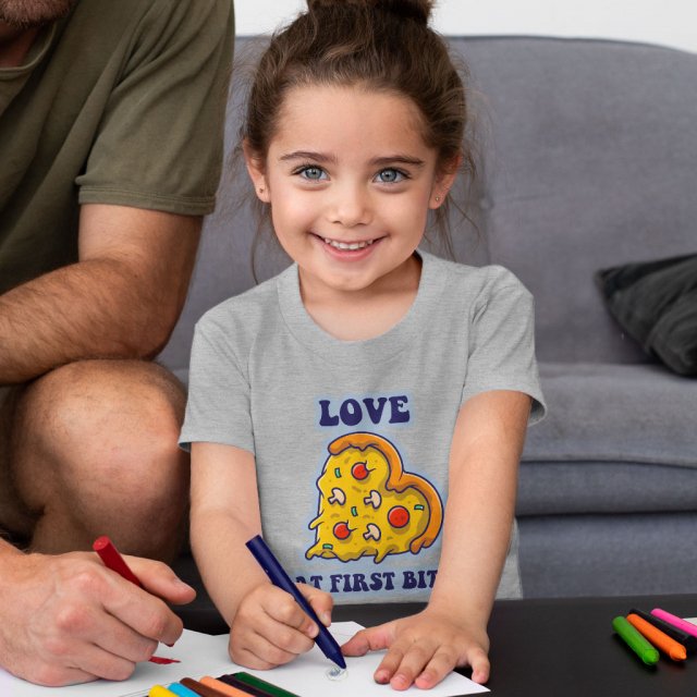 Love And Pizza Toddler T-Shirt – Funny Kids’ T-Shirt – Heart Tee Shirt for Toddler