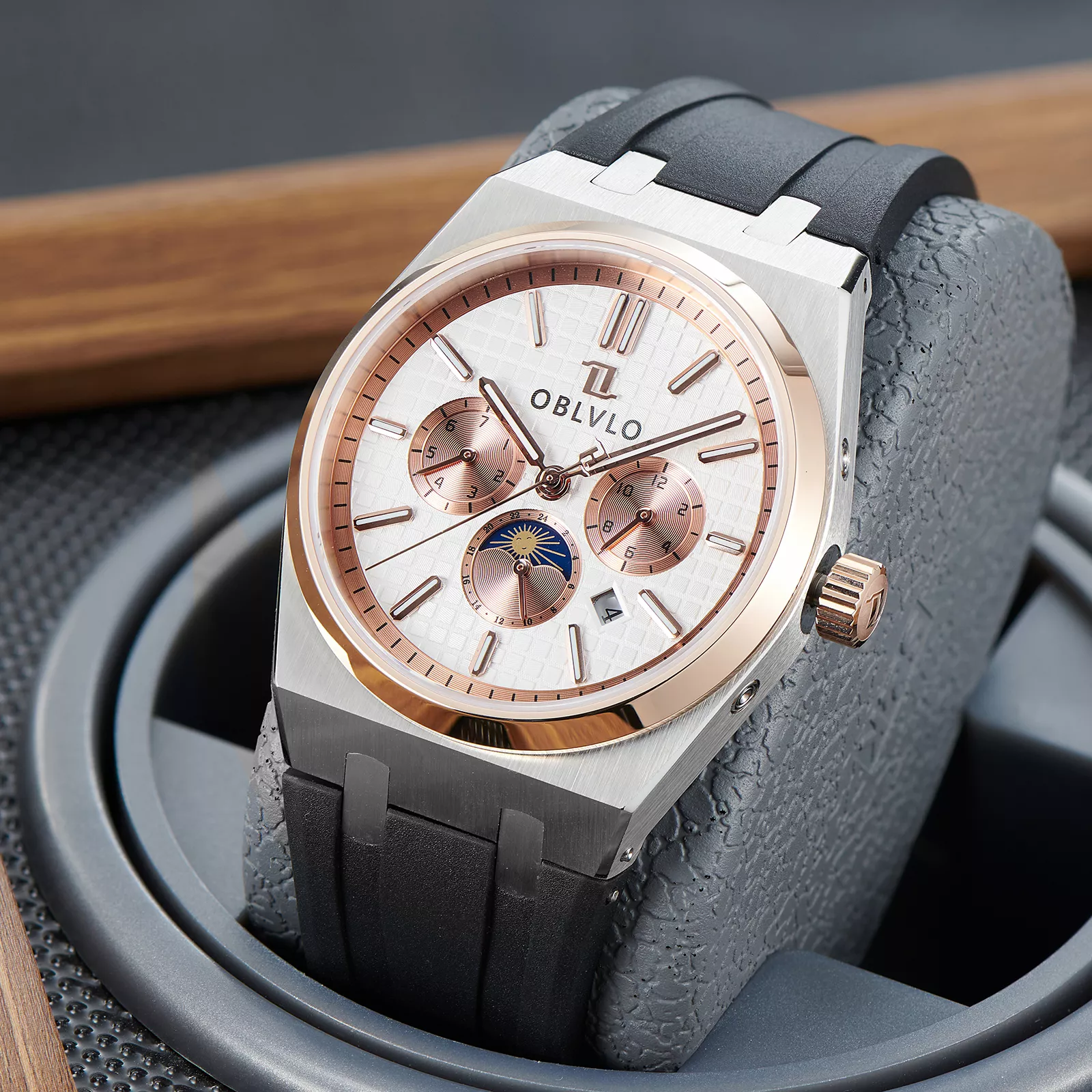 This watch is more than a timekeeper—it’s a statement of style and confidence. The smooth, numberless dial keeps your look refined and uncluttered, while the three sub-dials add layers of functionality without compromising design. The silicone strap wraps comfortably around your wrist, and the waterproof construction means you can wear it worry-free during daily activities or light water exposure.