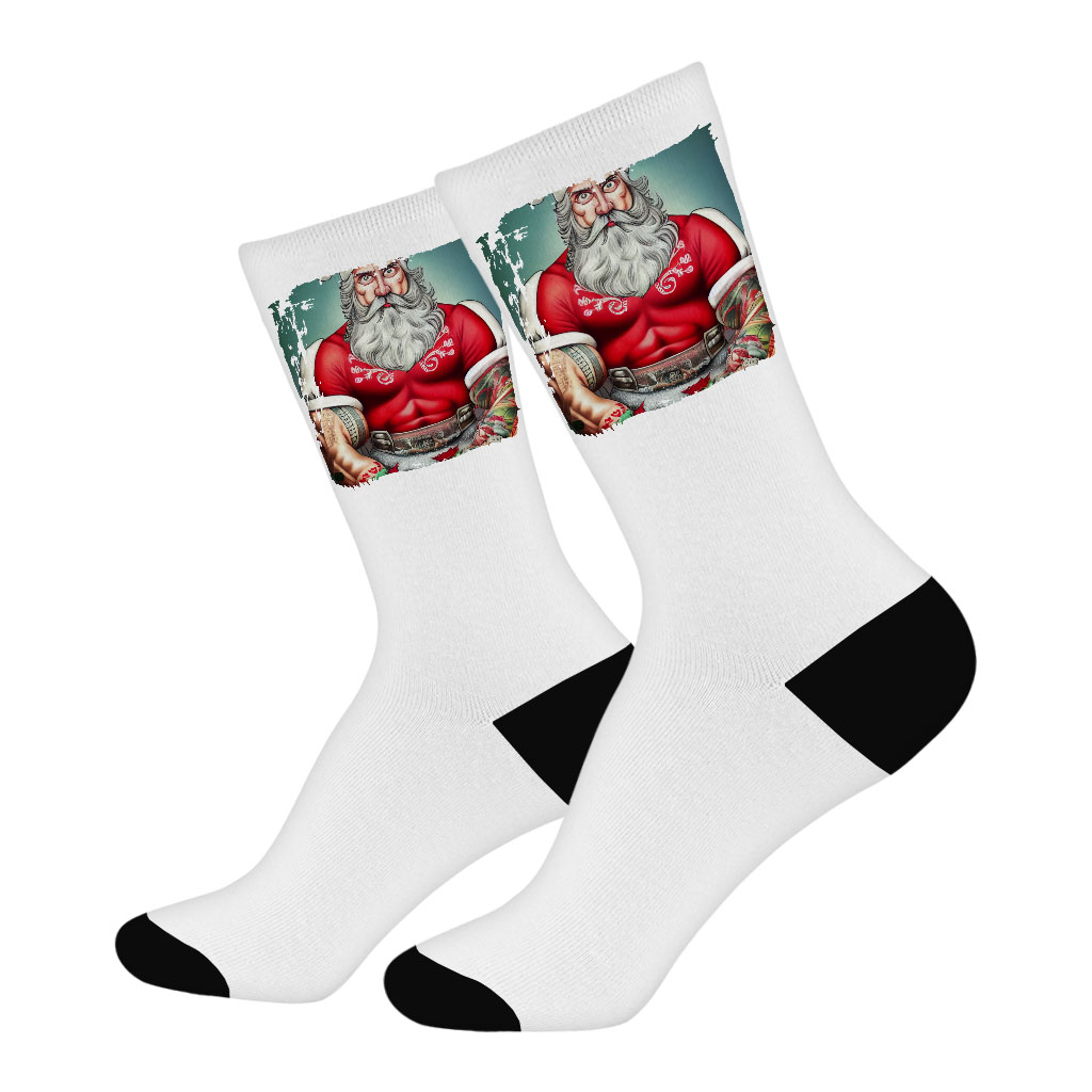 Muscle Santa Socks – Santa Claus Novelty Socks – Christmas Crew Socks