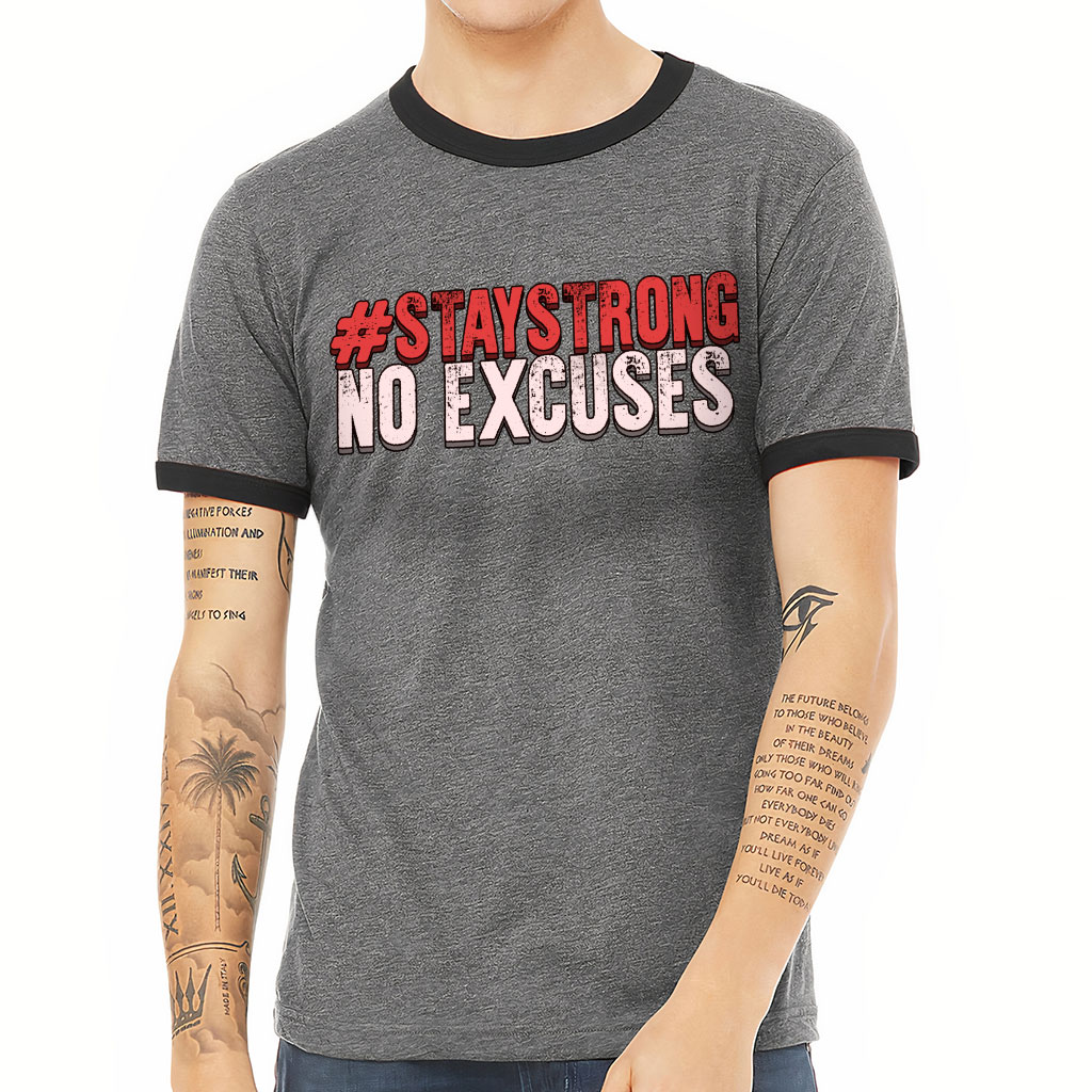 No Excuses Ringer T-Shirt – Word Art T-Shirt – Motivational Ringer Tee