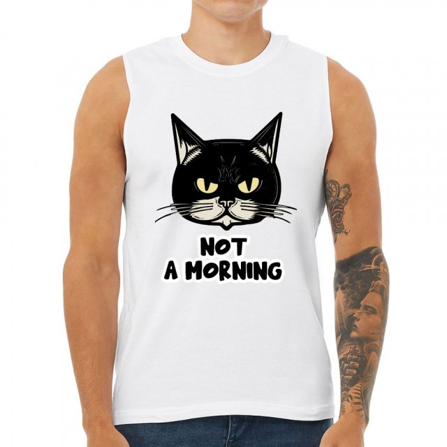 Not a Morning Men’s Muscle Tank – Cat Face Men’s Sleeveless T-Shirt – Drawing Tank