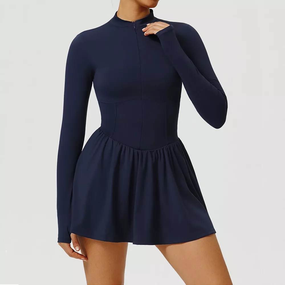 What makes this athletic romper truly special is its balance of function and femininity. The lightweight, moisture-wicking fabric keeps you cool and dry even through your most intense workouts. Its skirt-style overlay brings a stylish twist to traditional bodysuits, allowing you to train hard while looking effortlessly chic.