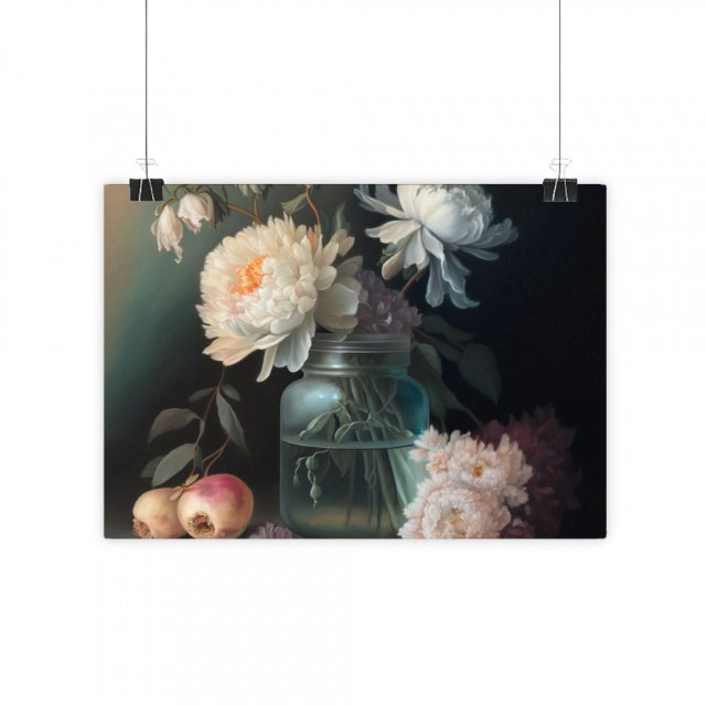 Peony Flower Gloss Horizontal Poster – Botanical Illustration Art Print – Cool Design Wall Poster