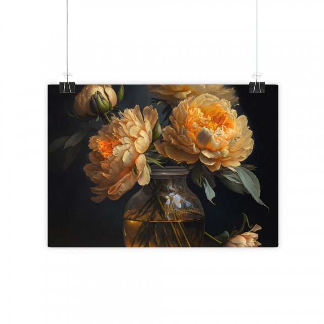 Peony Gloss Horizontal Poster – Botanical Flower Art Print – Cool Wall Poster