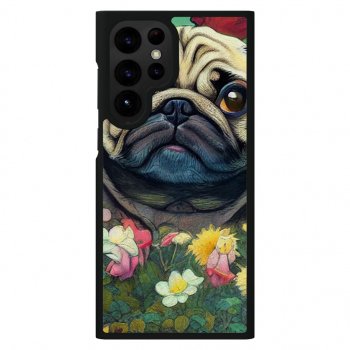Pug Samsung S22 Phone Case – Cute Phone Case for Samsung S22 – Floral Samsung S22 Phone Case
