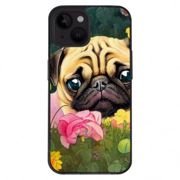 Pug iPhone 14 Plus Case – Cute Phone Case for iPhone 14 Plus – Floral iPhone 14 Plus Case