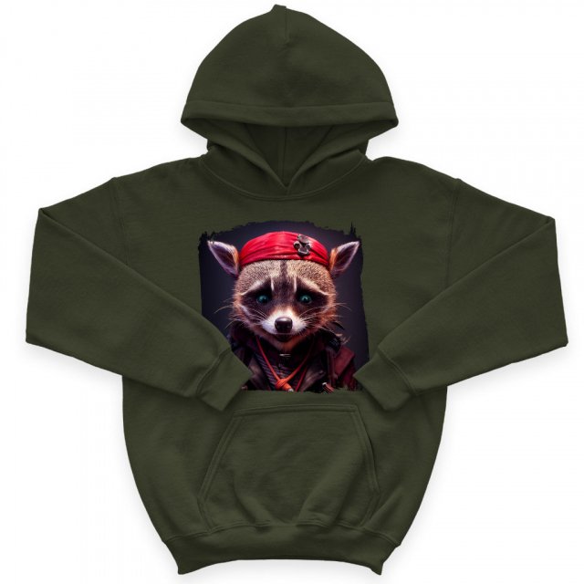 Pirate Print Kids’ Sponge Fleece Hoodie – Cool Raccoon Kids’ Hoodie – Fantasy Hoodie for Kids