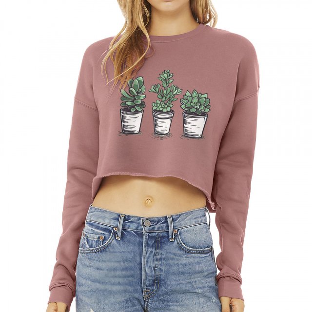 A classic women’s cropped sweater in comfy, super-soft fleece designed for warmth and breathability. Plant Print Cropped Sweatshirt features an on-trend drop-shoulder seam and a retail fit. Finished with ribbed cuffs and a raw hem finish. Offered in poly-cotton sponge fleece.
