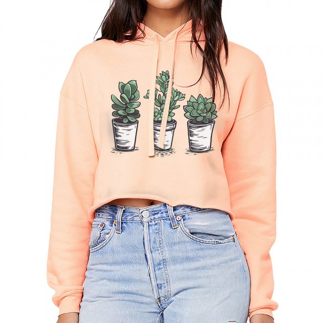 Plant Print Women’s Cropped Hoodie – Botanical Cropped Hoodie – Illustration Hooded Sweatshirt