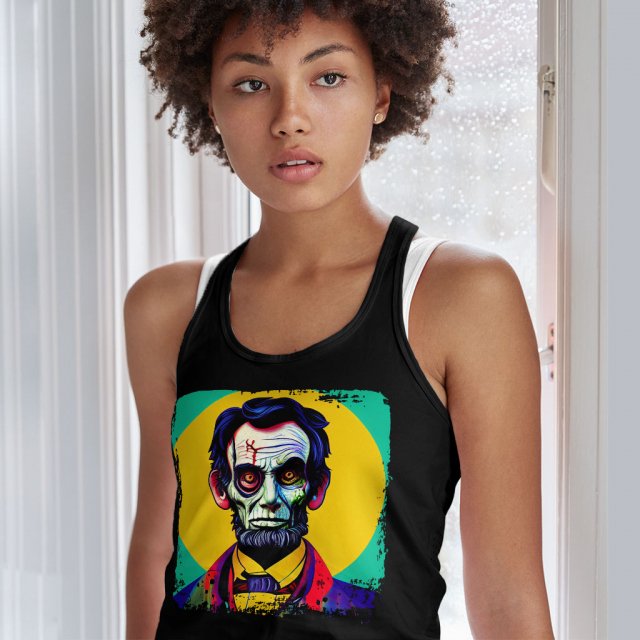 Pop Art Print Racerback Tank – Abraham Lincoln Tank – Funny Zombie Workout Tank
