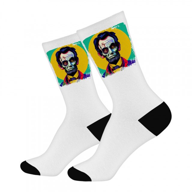 Pop Art Print Socks – Abraham Lincoln Novelty Socks – Funny Zombie Crew Socks