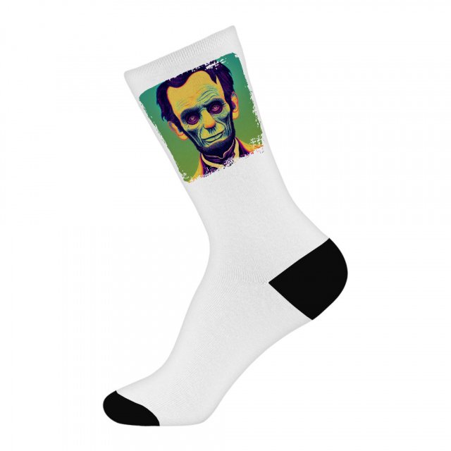 President Abraham Lincoln Socks – Zombie Art Novelty Socks – Portrait Crew Socks