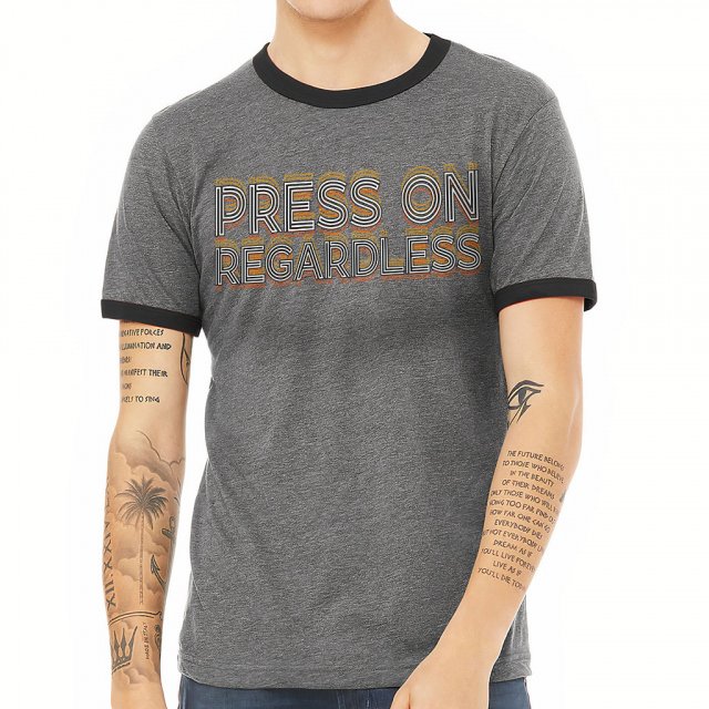 Press on Regardless Ringer T-Shirt – Unique T-Shirt – Art Ringer Tee