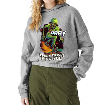 Zombie Themed Women’s Cropped Hoodie – Graphic Art Cropped Hoodie – Unique Hooded Sweatshirt