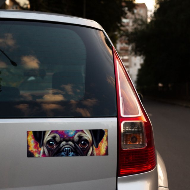 Pug Dog Magnetic Bumper Sticker – Space Bumper Sticker – Printed Bumper Sticker