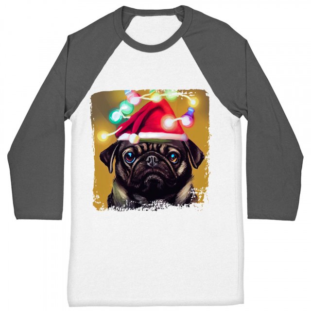 Pug Graphic Baseball T-Shirt – Christmas T-Shirt – Pug Art Baseball Tee