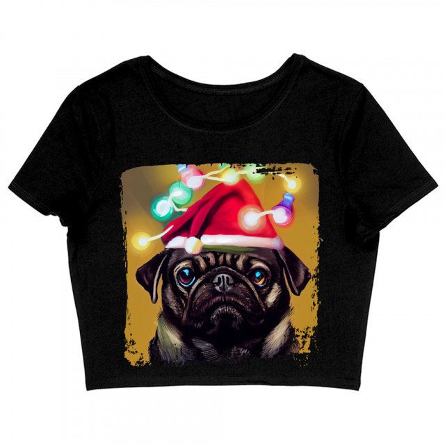 Pug Graphic Women’s Cropped T-Shirt – Christmas Crop Top – Pug Art Cropped Tee