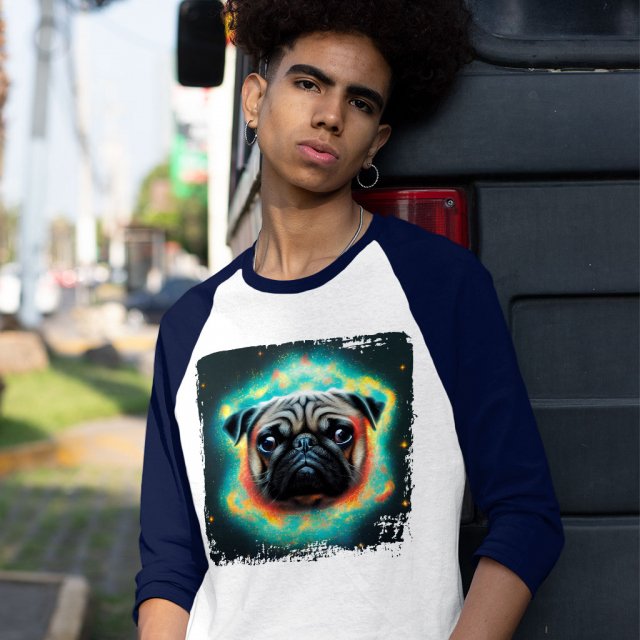 Pug in Space Baseball T-Shirt – Funny T-Shirt – Galaxy Tee Shirt