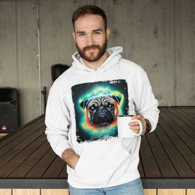 Pug in Space Hooded Sweatshirt – Funny Hoodie – Galaxy Hoodie