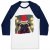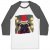 features raglan 3/4 sleeves and a modern fit that is perfect for a day