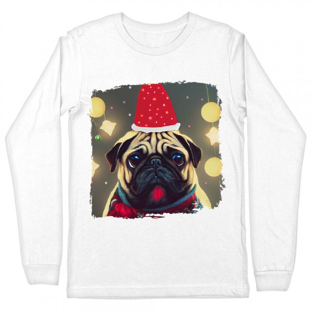 Pug Print Long Sleeve T-Shirt – Dog Art T-Shirt – Graphic Long Sleeve Tee