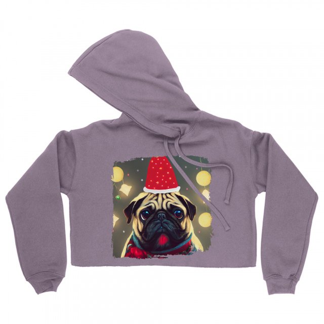 Pug Print Women’s Cropped Hoodie – Dog Art Cropped Hoodie – Graphic Hooded Sweatshirt