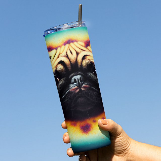 Pug Puppy 20oz Skinny Tumbler – Cosmic Travel Mug – Dog Design 20oz Skinny Tumbler