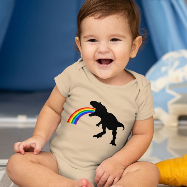 Rainbow Dinosaur Baby Jersey Onesie – Silhouette Baby Onesie – Creative Baby One-Piece