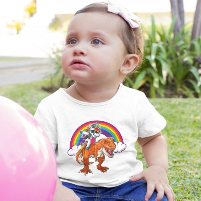 Rainbow Dinosaur Baby Jersey T-Shirt – Unicorn Baby T-Shirt – Funny T-Shirt for Babies