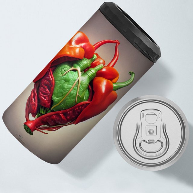 Red Heart Insulated Slim Can Cooler – Pepper Can Cooler – Illustration Insulated Slim Can Cooler