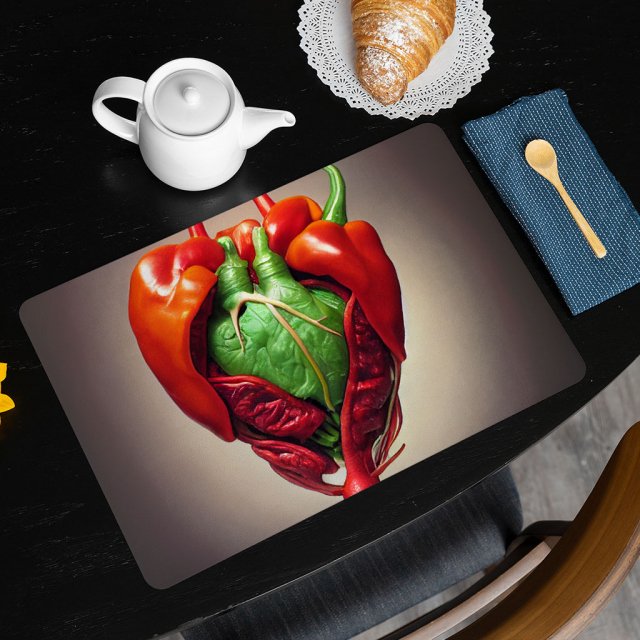 Red Heart Placemats 2 PCS – Pepper Placemats for Kitchen Table – Illustration Table Mats