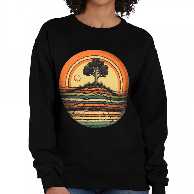 Retro Tree Crewneck Sweatshirt – Cute Design Women’s Sweatshirt – Colorful Sweatshirt