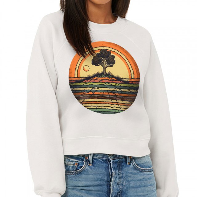 Retro Tree Raglan Pullover – Cute Design Women’s Sweatshirt – Colorful Pullover