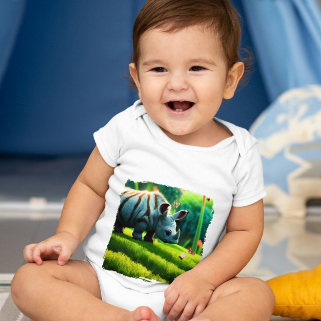 Rhino Designs Baby Jersey Onesie – Wild Animal Baby Onesie – Cute Baby One-Piece