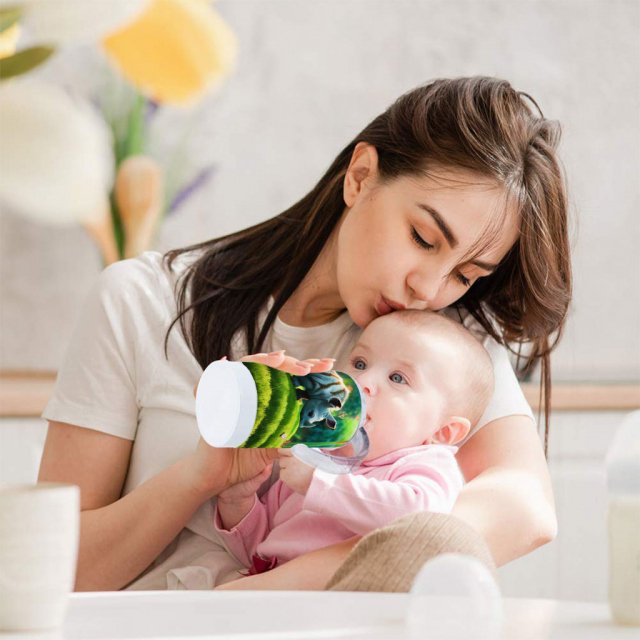 Bite-resistant, raised spout for easy drinking, promoting safe, independent drinking. Spill-proof, soft spout is designed to be gentle on gums while teaching babies to drink from a cup.