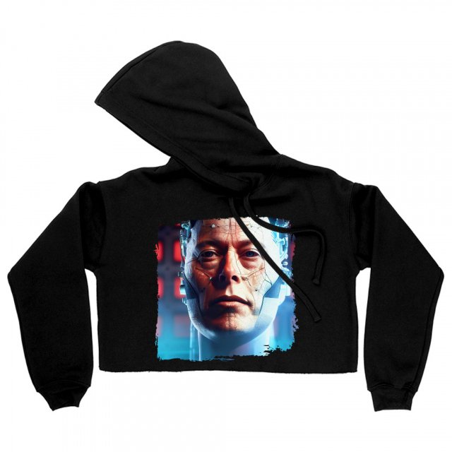 Robot Art Women’s Cropped Fleece Hoodie – Colorful Cropped Hoodie for Women – Art Hooded Sweatshirt