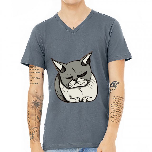 Sad Cat V-Neck T-Shirt – Illustration T-Shirt – Art V-Neck Tee