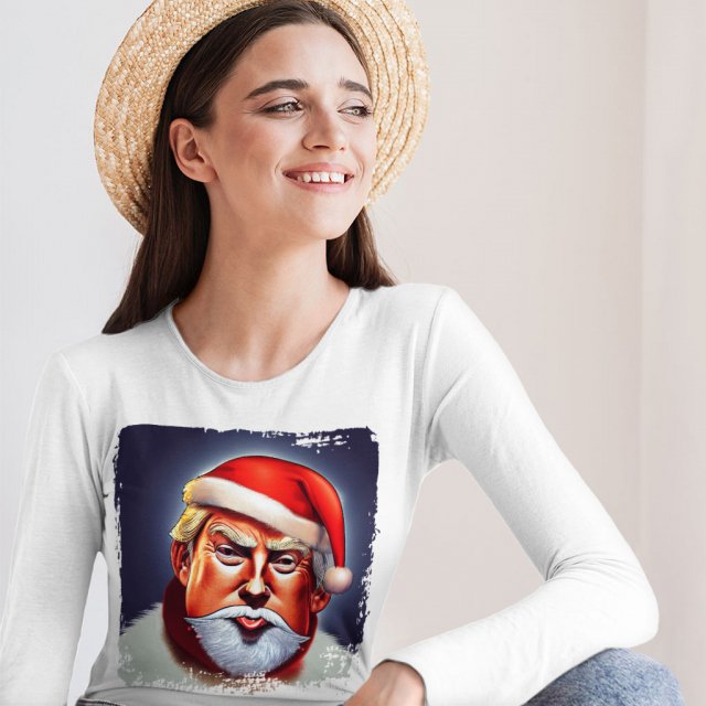 Santa Claus Long Sleeve T-Shirt – Donald Trump T-Shirt – Art Print Long Sleeve Tee Shirt