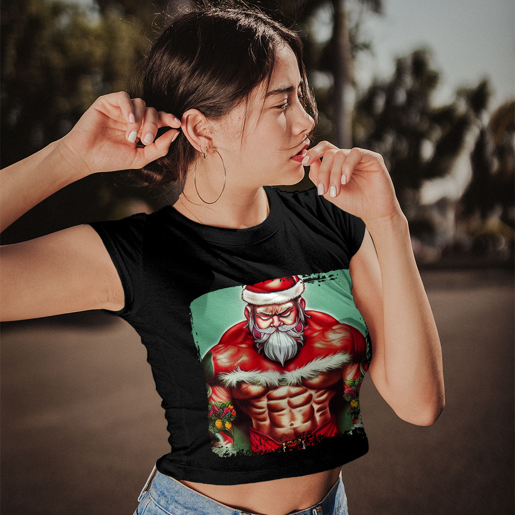 Santa Claus Tattoo Women’s Cropped T-Shirt – Christmas Crop Top – Art Print Crop Tee Shirt
