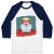 features raglan 3/4 sleeves and a modern fit that is perfect for a day