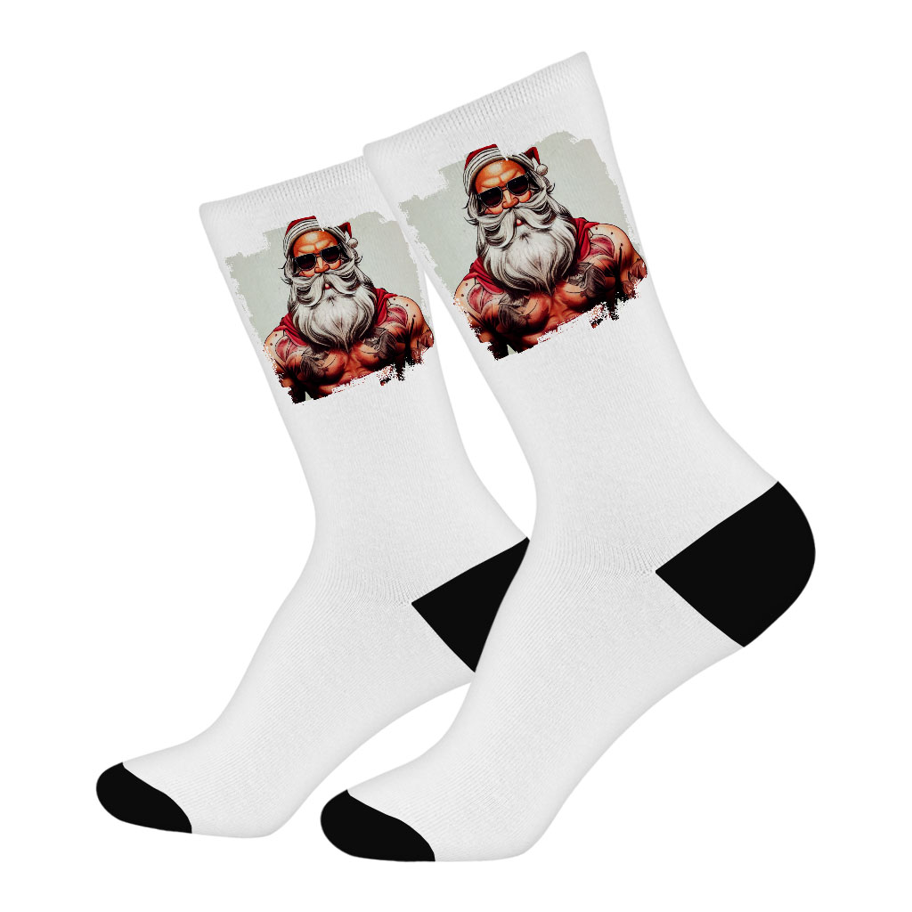 Santa With Sunglasses Socks – Graphic Novelty Socks – Christmas Crew Socks