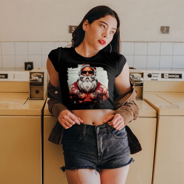 Santa With Sunglasses Women’s Cropped T-Shirt is no ordinary piece of clothing. Its form-fitting silhouette and soft fit and feel provide a retail fit for clothing that’s true to size.