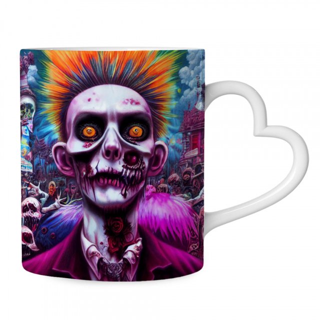 Scary Halloween Mug with Heart Handle – Face Mug – Illustration Ceramic Mug