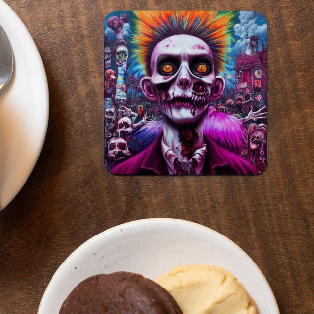 Scary Halloween Square Coasters – Face Coaster – Illustration Coasters for Drinks