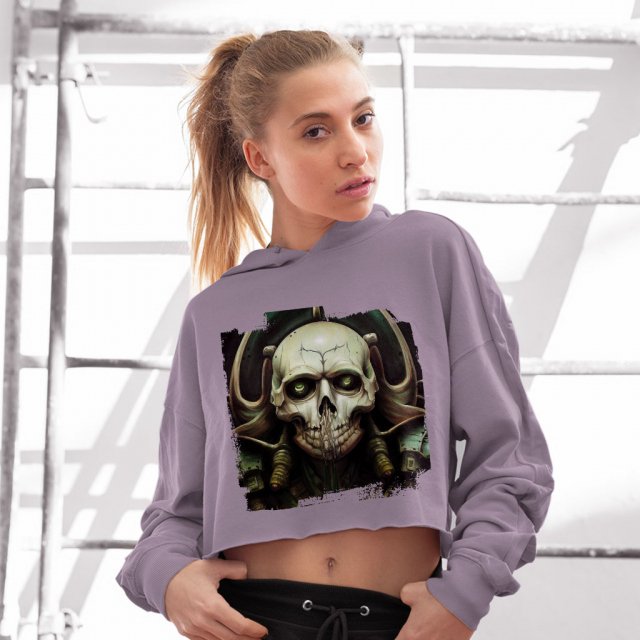 Scary Halloween Women’s Cropped Fleece Hoodie – Dead Skull Cropped Hoodie for Women – Graphic Hooded Sweatshirt