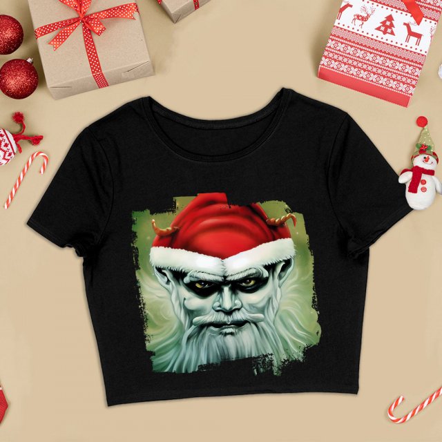 Scary Santa Claus Cropped T-Shirt – Best Holiday Presents – Perfect Presents