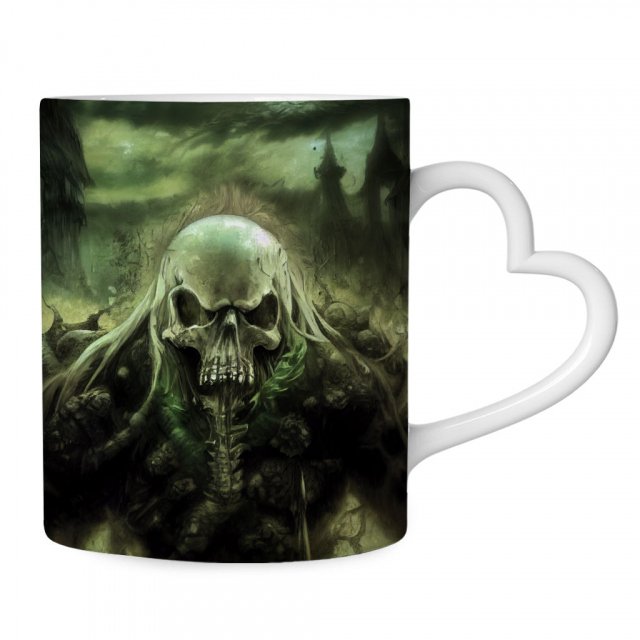 Skull Mug with Heart Handle – Scary Mug – Printed Ceramic Mug