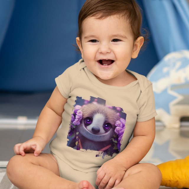 Sloth Design Baby Jersey Onesie – Floral Baby Onesie – Kawaii Baby One-Piece