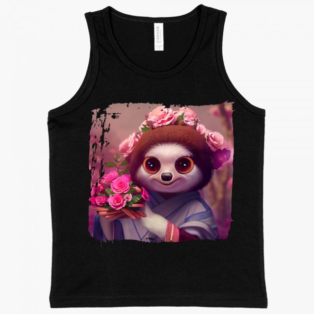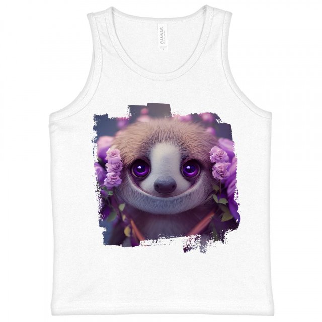 Sloth Design Kids’ Jersey Tank – Floral Sleeveless T-Shirt – Kawaii Kids’ Tank Top